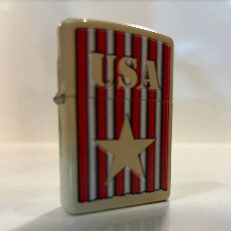 - روی بدنه کرمی با طراحی پرچم هست که این فندک برای کلکسیون شما عالی هست